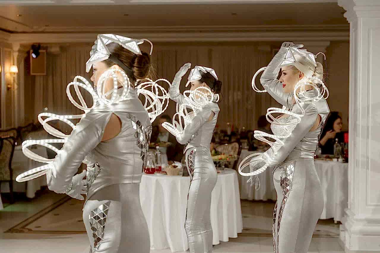 - Завораживающие выступления Снегурочеки Pin-Up шоу с зеркальным символом Нового года.