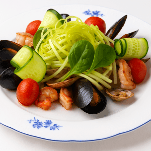 Теплый салат с Pin-Up креветками и зелеными овощами
